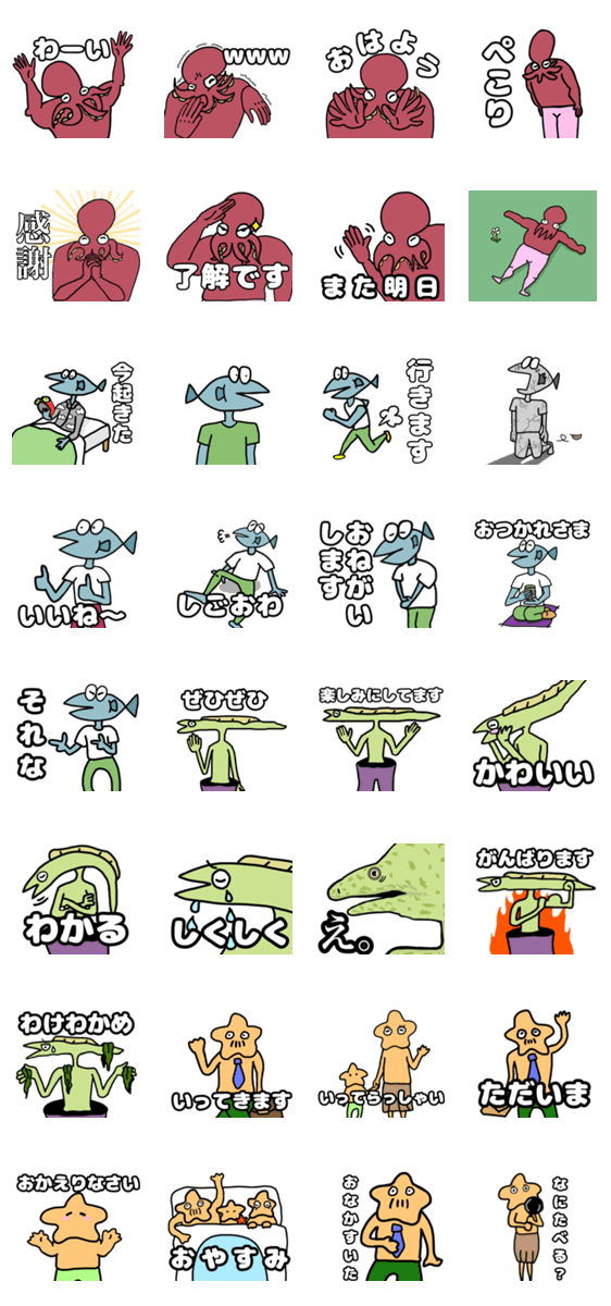 タコとその仲間たちのスタンプです!普段使いしやすいので是非。