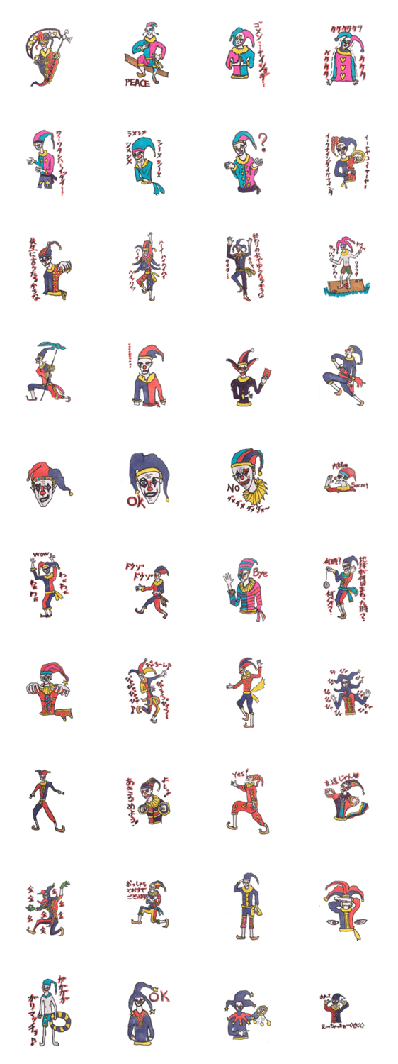 ハニカミピエロのバージョン2です。カラフルな色で彩るようにしました。そして相変わらずのひねくれ者。送った相手をイライラさせるか、喜ばせるかはあなた次第!