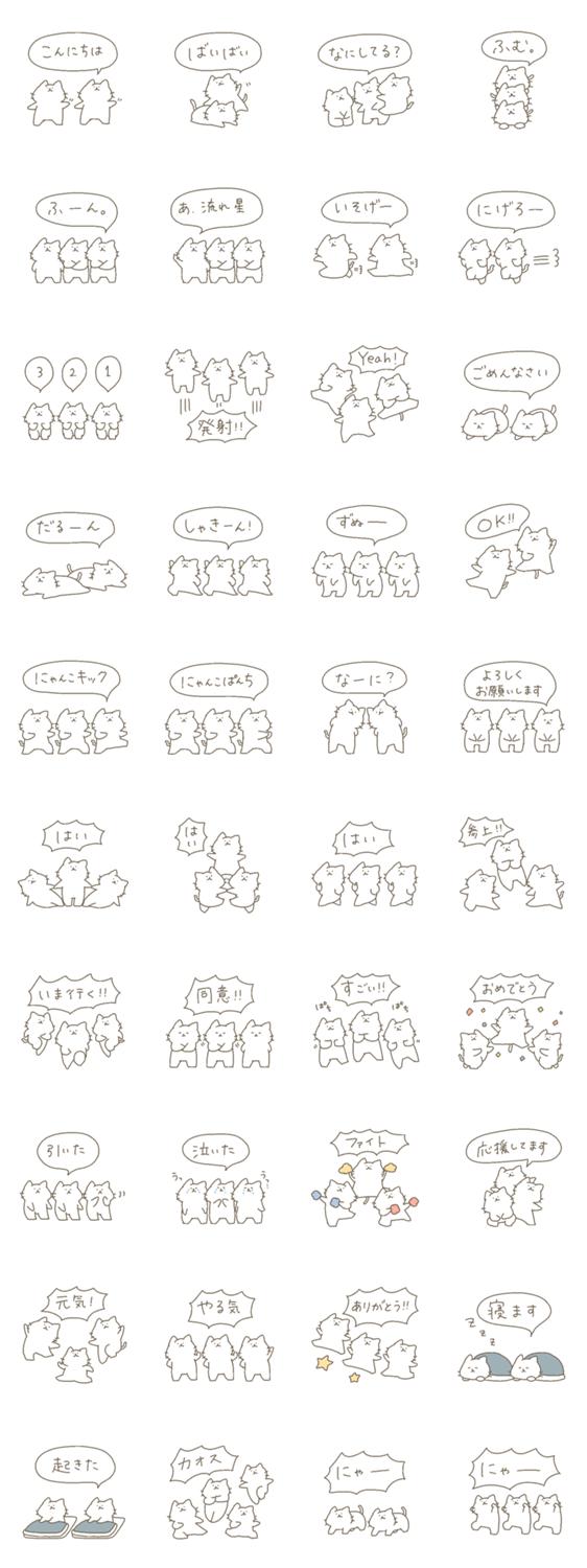 小さい白ねこ達がわちゃわちゃしてるスタンプです。猫/可愛い/ゆるい