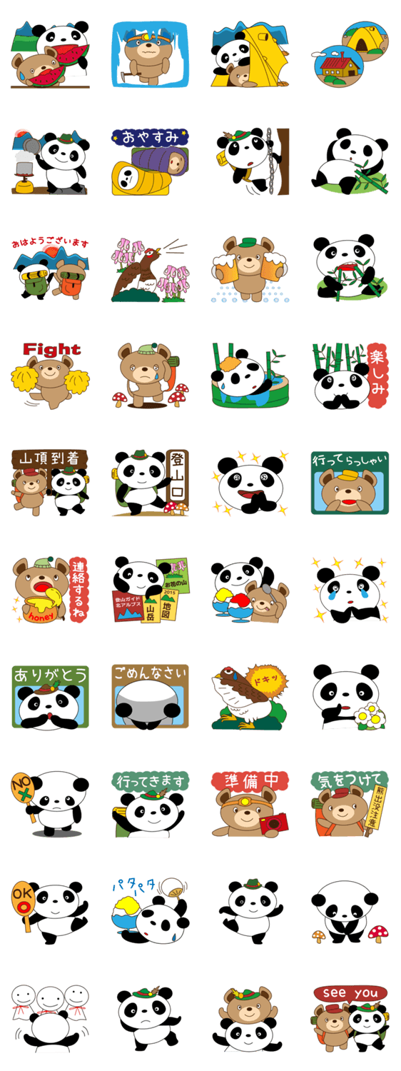可愛い!パンダ&くま(夏)登山計画~登頂 -LINEスタンプマニア