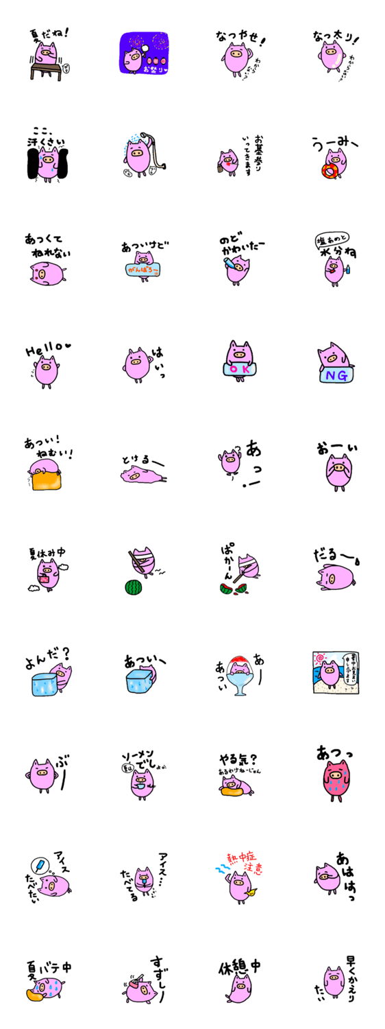桃色のぶたちゃんの夏は暑すぎて、しょうがない♪夏に使えるスタンプです。