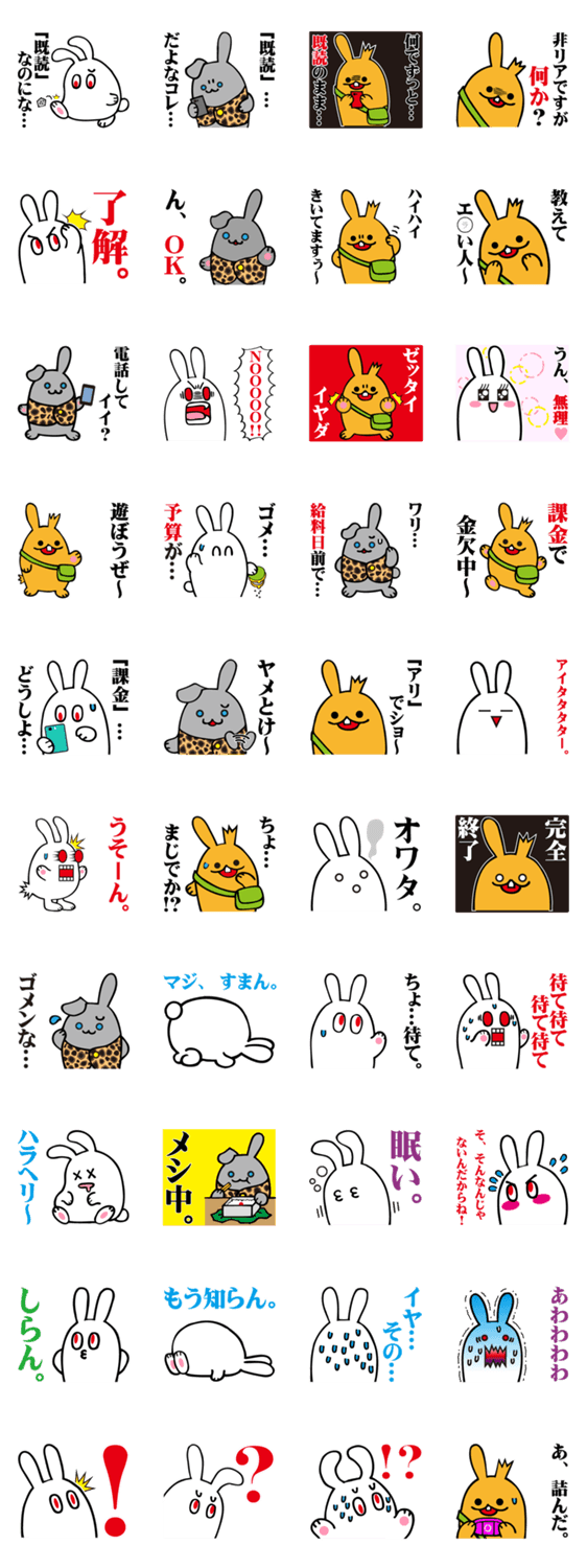 性格の違う3匹のウサギ。シチュエーションに合わせて使おう。友達との会話におススメ。