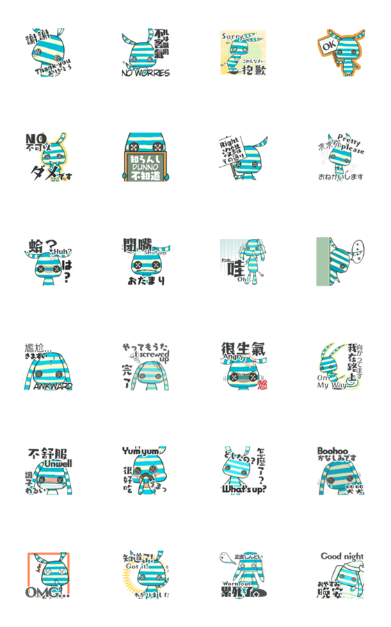| スタンプ説明 | 日英中トライリンガルスタンプ。 |