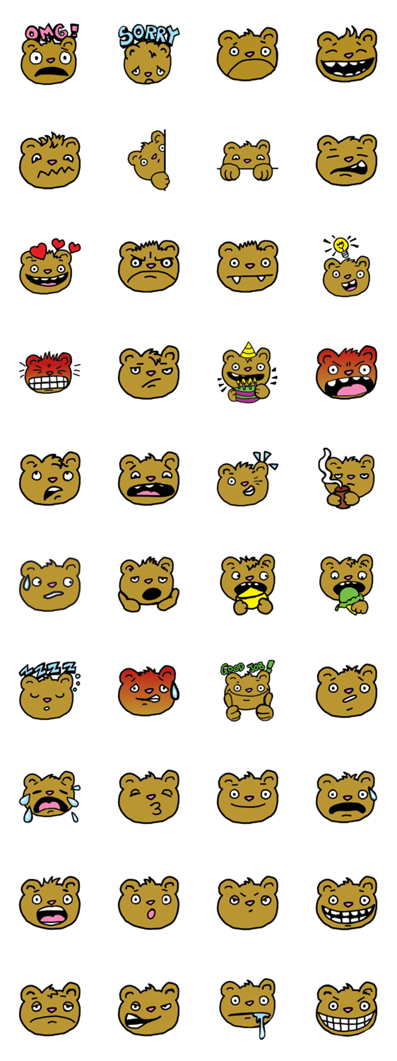 気分屋クマピーのスタンプ。微妙な感情を表現するクマピーが表情豊かに楽しい会話を演出してくれます。