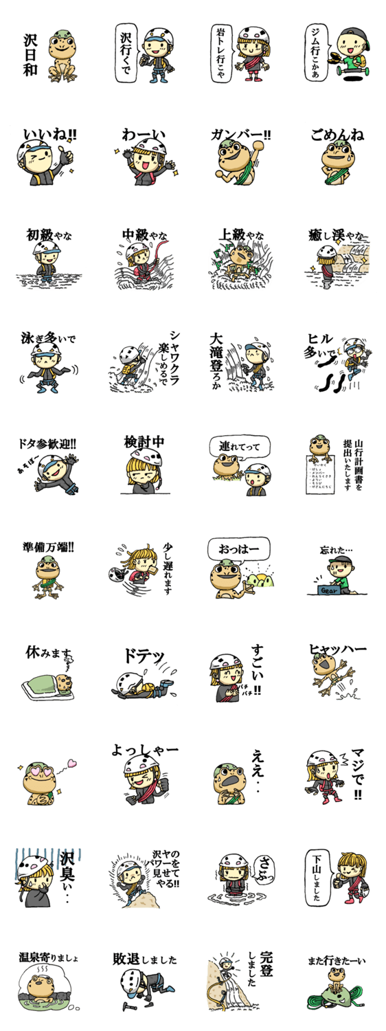 『沢ヤ専用スタンプ』の第二弾。沢登りの時に使う用語をスタンプにしました。