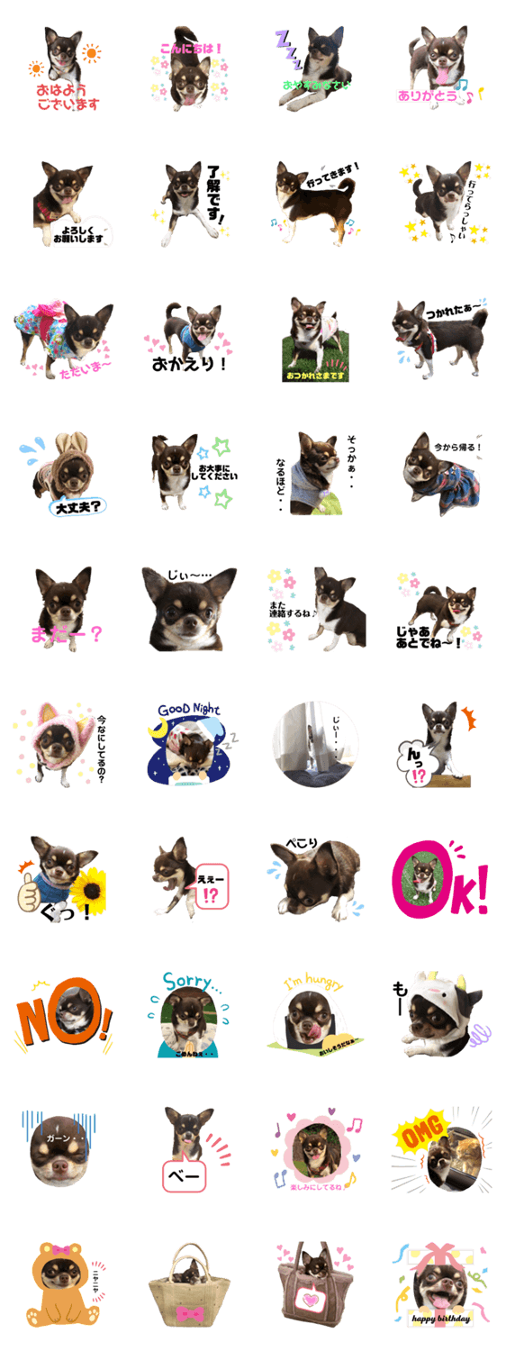 スムースチワワのまろん♀の日常会話で使えるスタンプです。