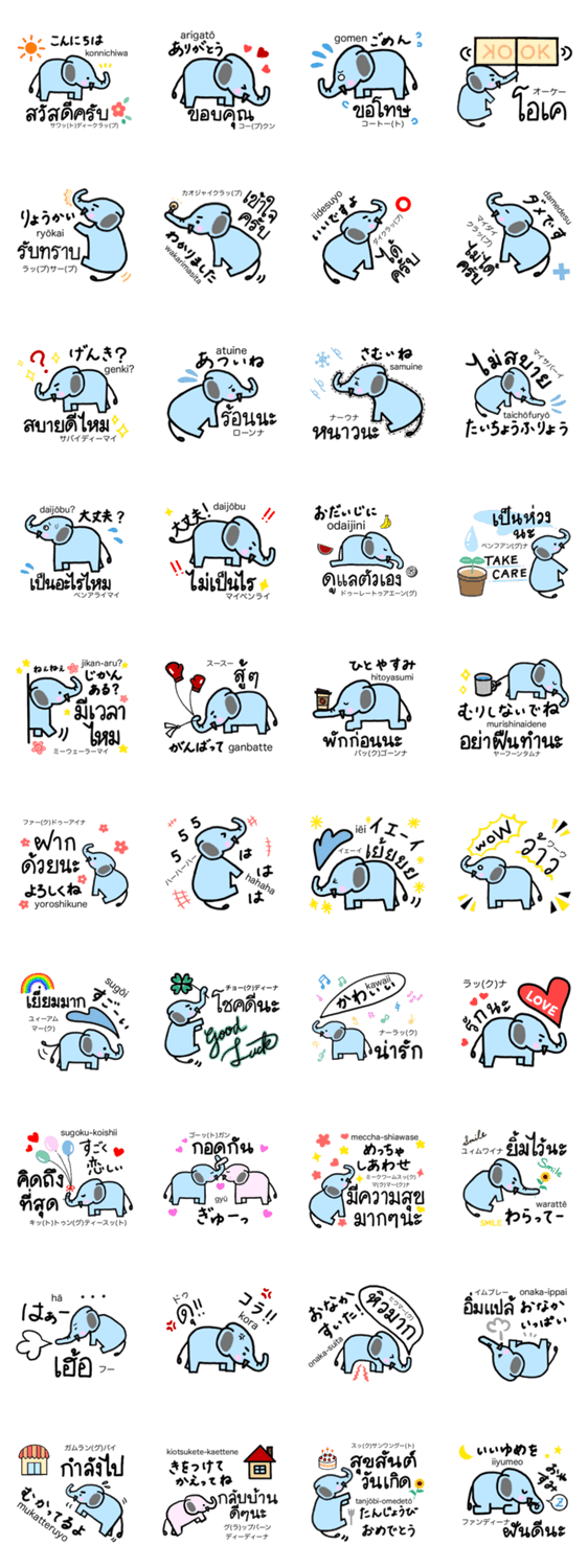 象の男の子「チャーンくん」スタンプ。日本語とタイ語で日常会話を楽しもう♪