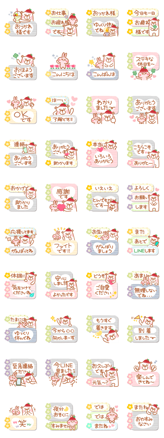 誰にでも幅広く使えるゆる敬語の付箋スタンプです。挨拶/感謝/気遣い/丁寧/日常/毎日/よく使う/うさぎ