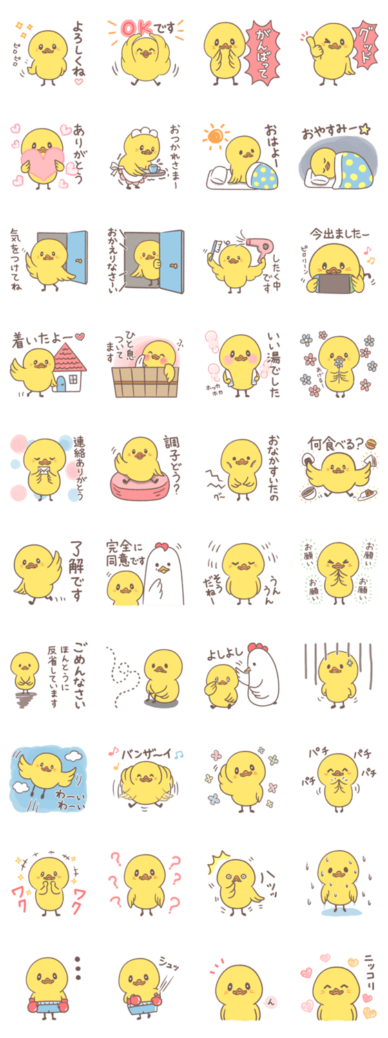 黄色いヒヨコです。アヒル口がチャームポイント。使いやすいと思います。#はじめてのLINEスタンプ にオススメ