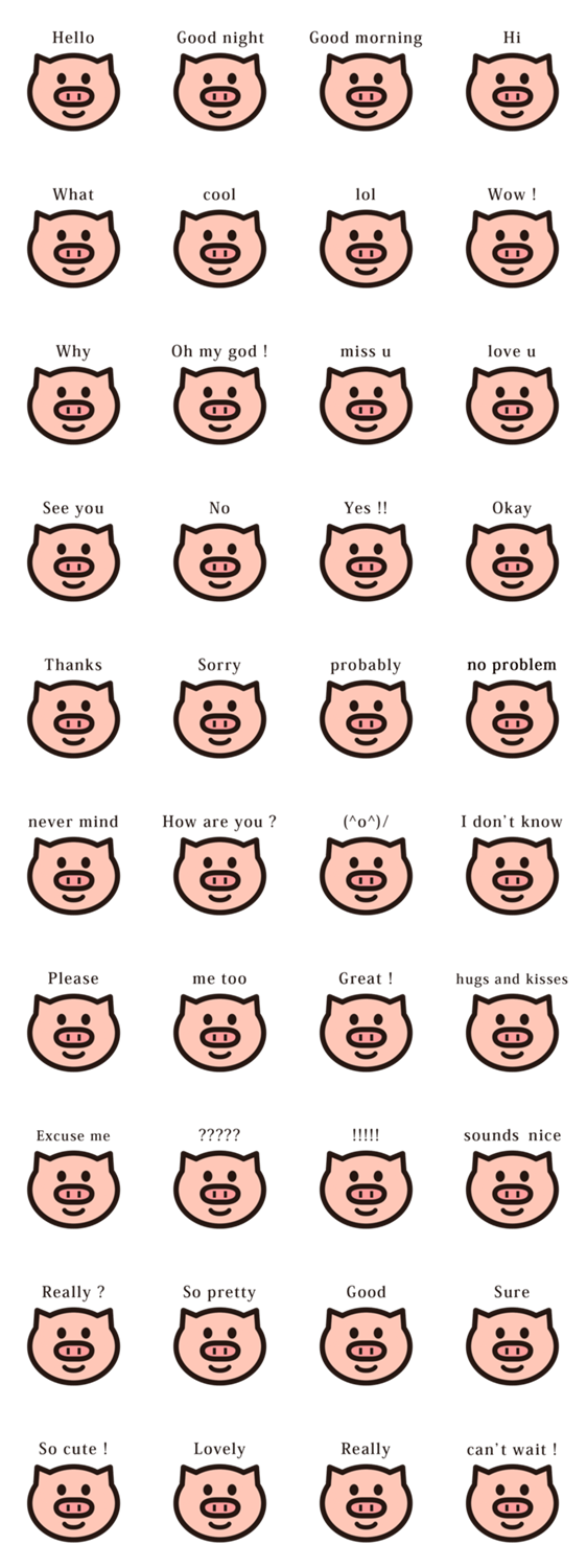 ぶたさん 顔 と 英語 English -LINEスタンプマニア
