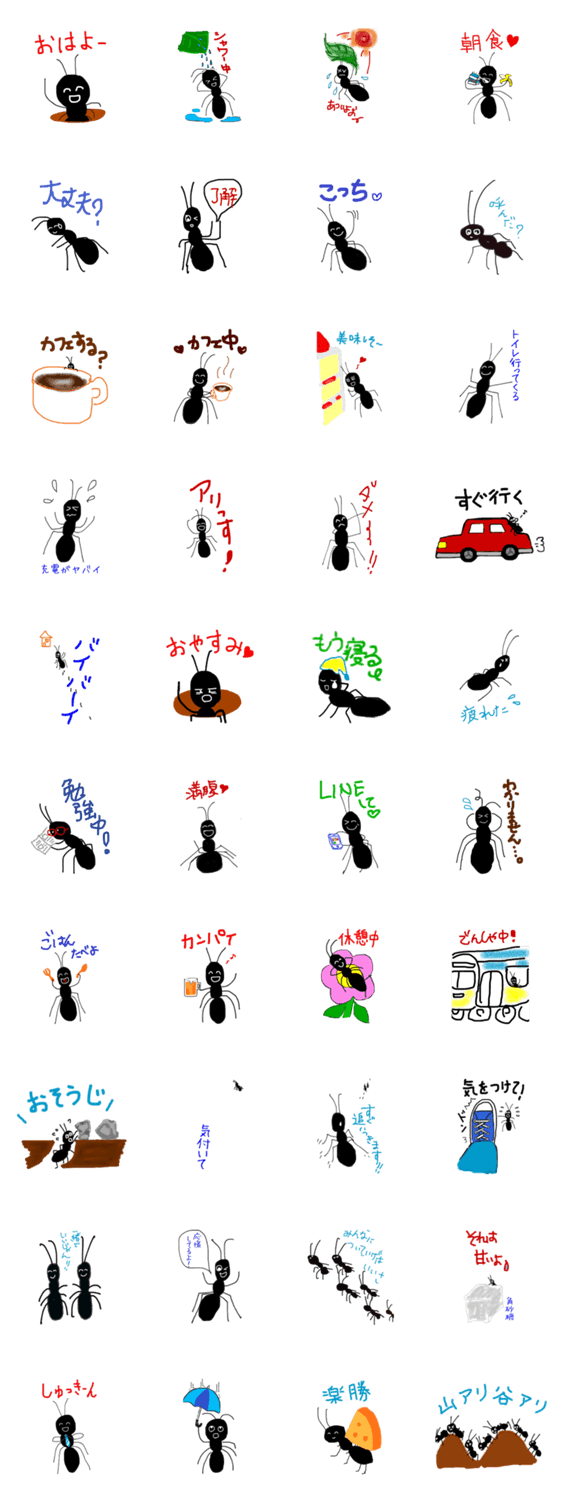 アリたちが繰り広げるシュールでちょっとかわいい日常会話に使える便利なスタンプです。どうぞよろしくお願い致します。