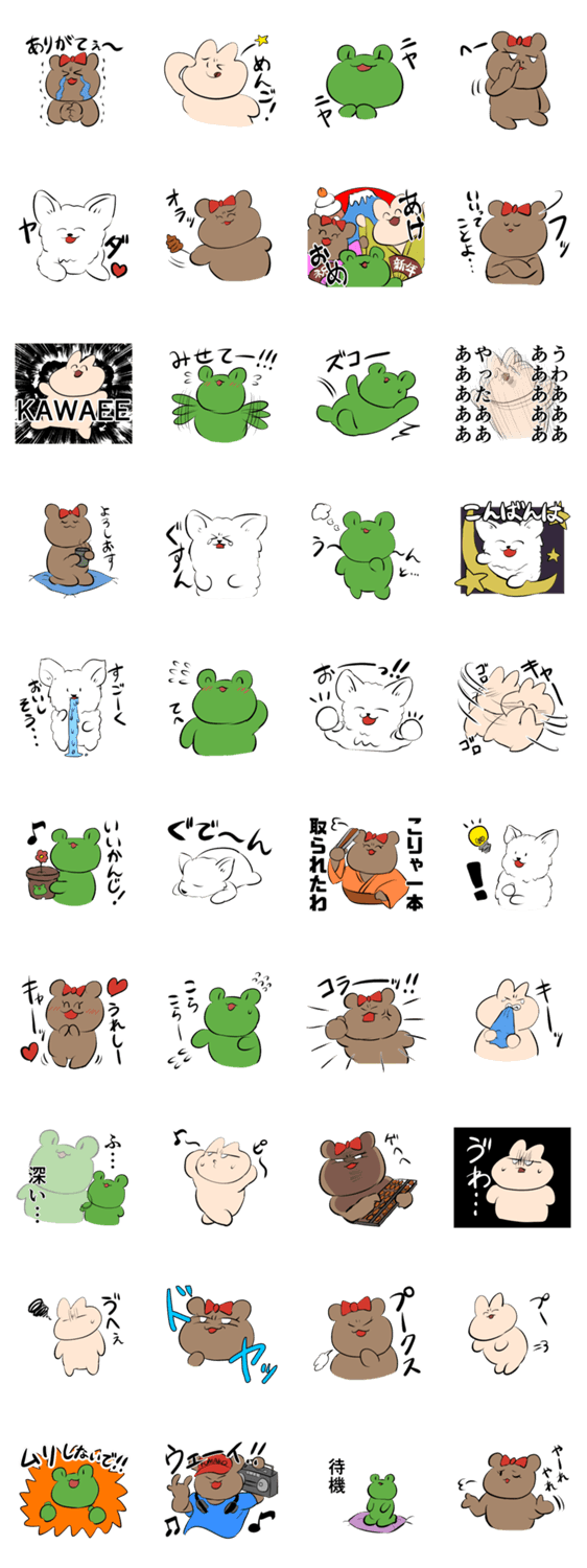 ほっぺがポヨポヨのうさぎとその仲間のスタンプです。