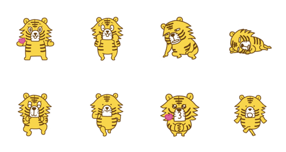 きままなトラのLINEスタンプ。楽しい時と悲しい時にピッタリの虎のイラストをアニメーションにしました。日常会話に使ってください!