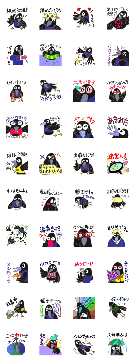 かわいくて腹黒い鳥のスタンプ第3弾。カラスが好き勝手言ってます。毒舌を楽しんでね。強気と思ったら弱気になるかまってちゃん。面白い男です。mihoの願望も使ってね。