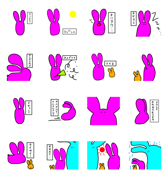派手な色のかわいいピンクのうさぎたち!ほんわかした日常の手描きスタンプです!
