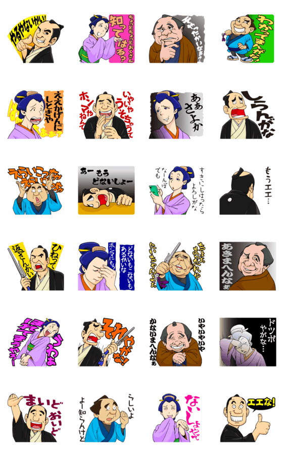 江戸の侍、うっかり同心とその仲間が関西弁で喋るLINEスタンプ。 決まり文句として使う昔ながらのフレーズです。