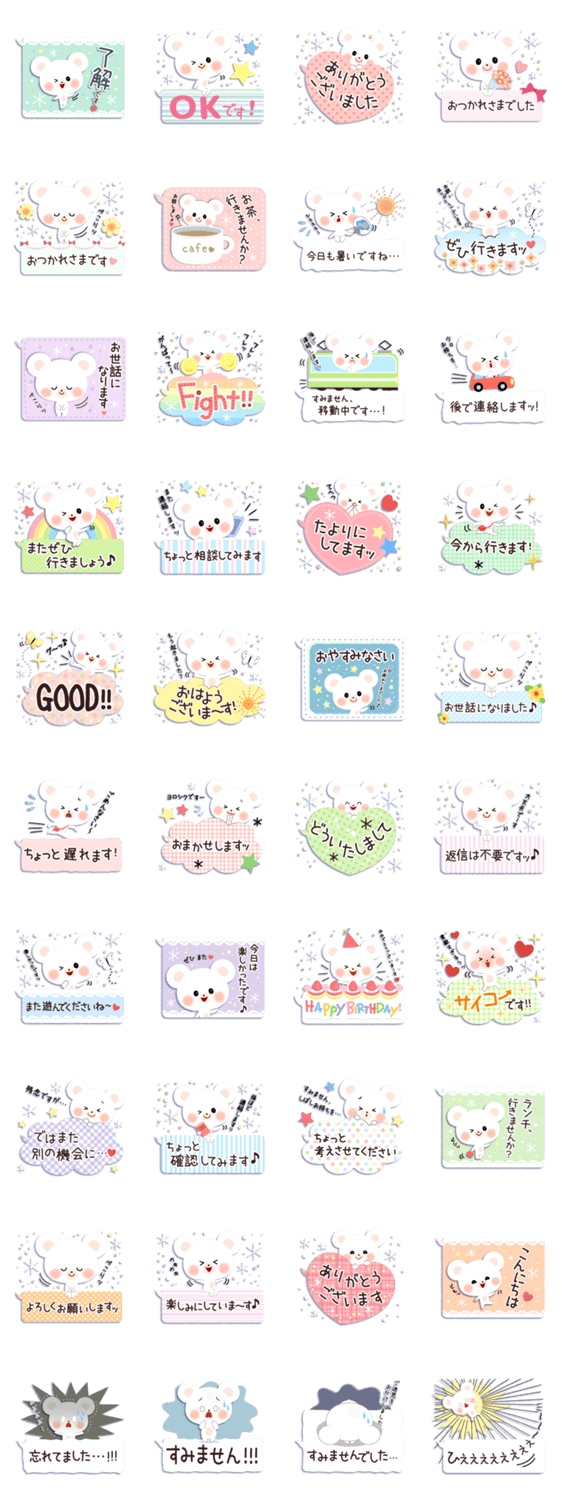 大人かわいい、ナチュラル柄のふきだしタイプ。主婦、学生からママ友や先輩へ、ゆるっと使いやす白いくまの敬語です♪