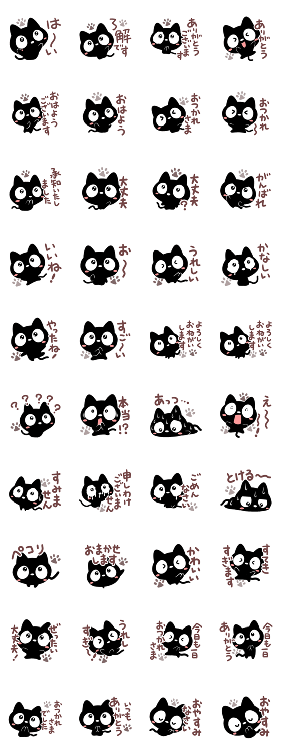 『クロネコすたんぷ』から、『シンプル&丁寧』編です。ていねいな言葉や敬語、簡単にリアクションできるスタンプなどを集めました。黒猫好きな方にぜひ。【かたこ】