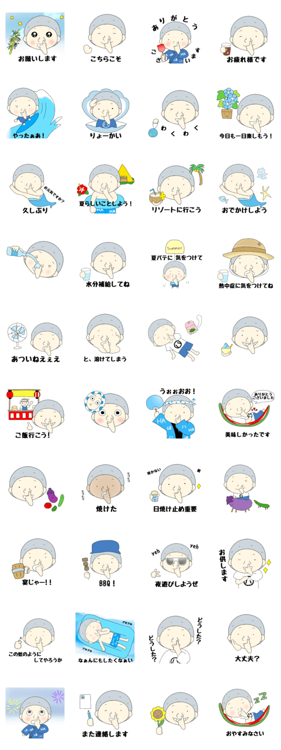 ゆるっと可愛いくちょっぴりシュールな男の子、ハナクソ太郎と過ごす夏。こまめに水分補給をして、熱中症に気をつけて楽しく過ごそう!