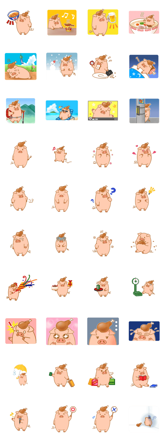 肉が大好きな豚のスタンプです。いつでも、どこでも肉と一緒。