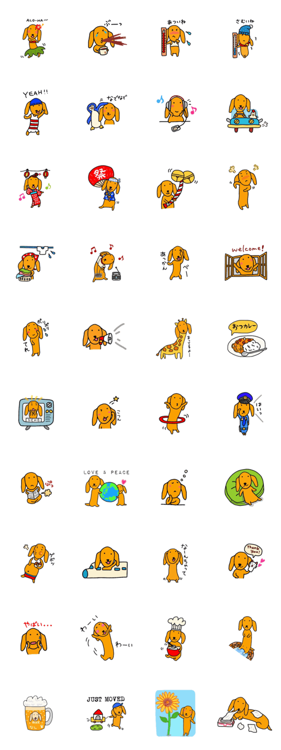日常でよく使う、ダックス犬のミニサイズスタンプ。 第3弾だよ。