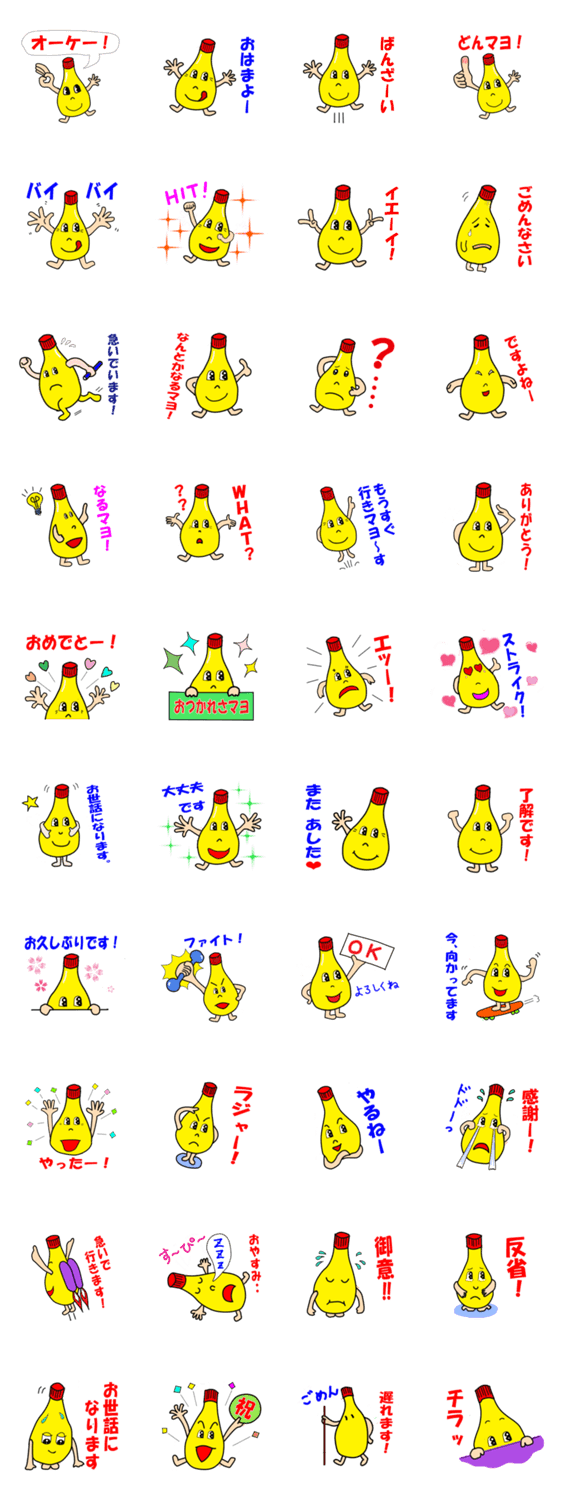 マヨネーズのマヨちゃんです。マヨラーの方におすすめのスタンプです。毎日、楽しく使ってください