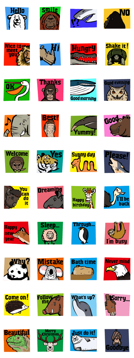 日常を彩る素敵な動物たちのユニークなカラフルスタンプ。
