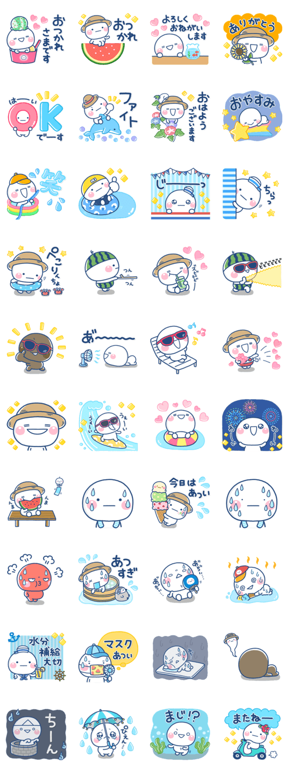 夏に毎日使える便利な内容を厳選しました。とっさに使えるやさしいスタンプです。【作:いしいともこ】