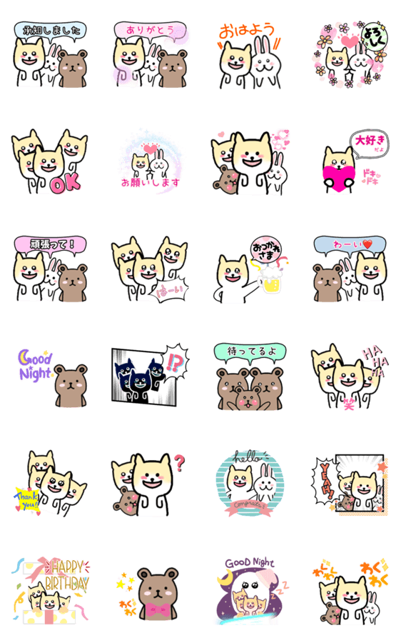 毎日使える。わんちゃんと仲間たち可愛い癒し系スタンプ。LINEスタンプメーカーでつくったスタンプです。