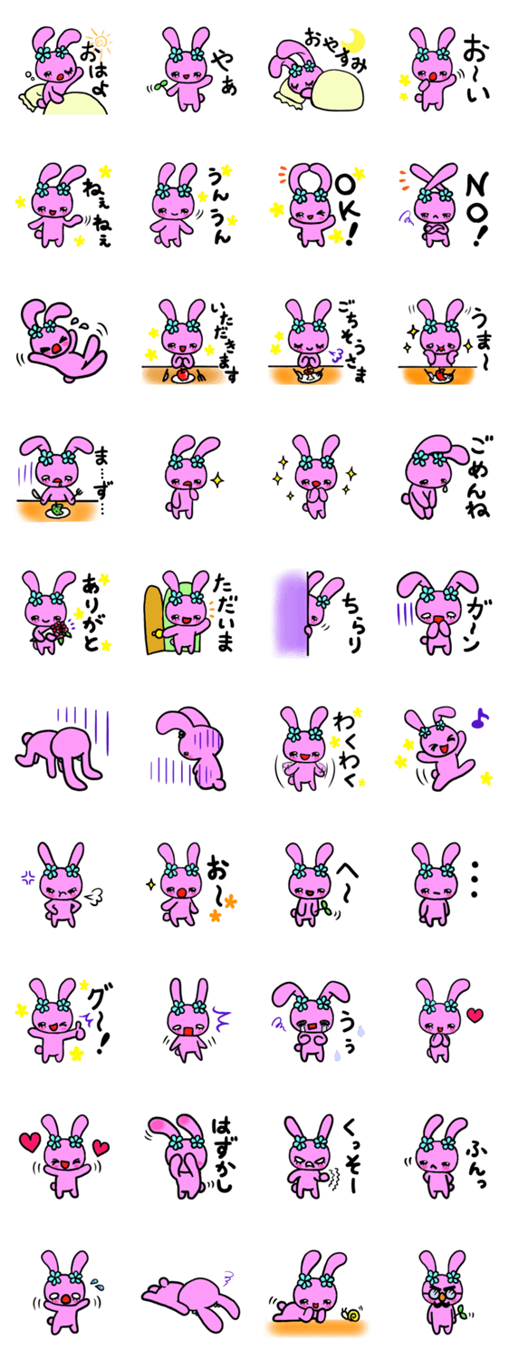 可愛いうさぎのスタンプです。日常的に使えるラインナップになってます。ぜひ使ってね。