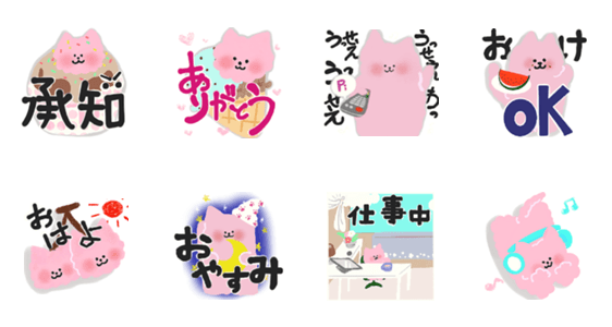 ユニークでマイペース、柔らかくてふわふわしたピンクの猫のスタンプです。