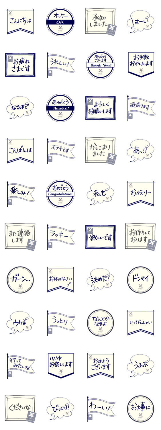 雑貨屋ジュビリークアトロのスタンプです。あったら便利そうな言葉を集めてみました!