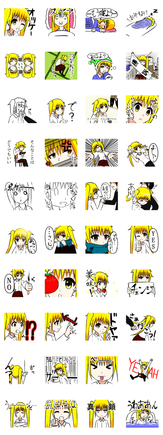 金髪ツインテールの女の子のスタンプです。スヤァしたり、怒ってきたり、煽ってきたりします。好きな食べ物はトマトのようです。