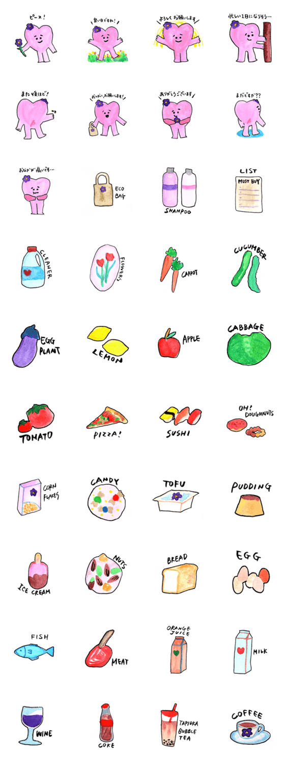 あなたの毎日のお買い物やおつかいを、グンと楽しくしてくれます! スタンプを送った相手は優しいピースくんに癒されること間違いなし。 毎日に小さなスパイスを。