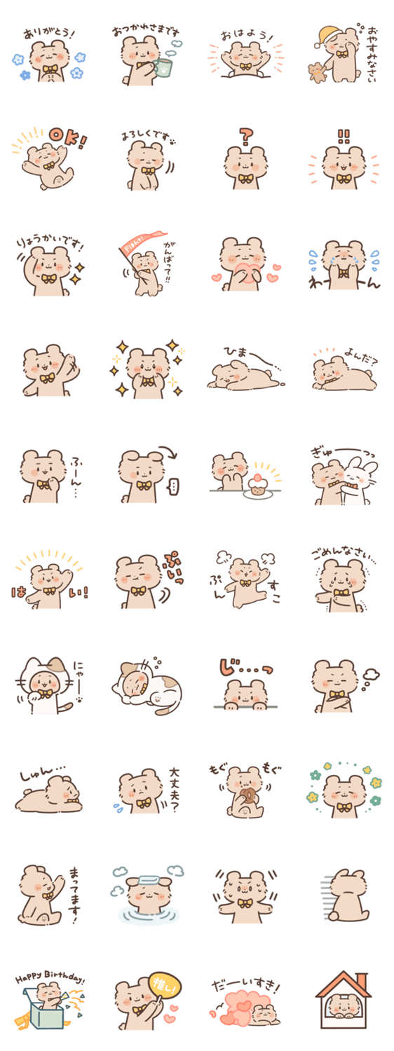 “素直になるスタンプ”シリーズのくまちゃんです!素直な気持ちをたくさん伝えます。