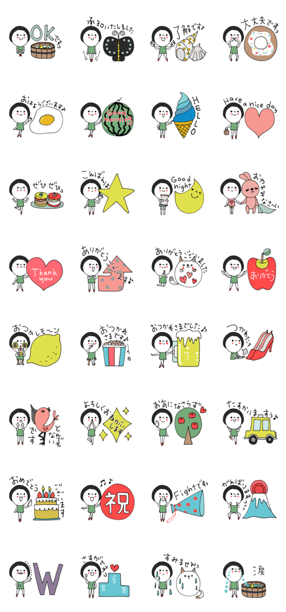 黒髪のレト子がトークをほんわかまとめます♡おはよう/おやすみ/了解/よろしく/おつかれ/ありがとう/など毎日使いたいスタンプできました。
