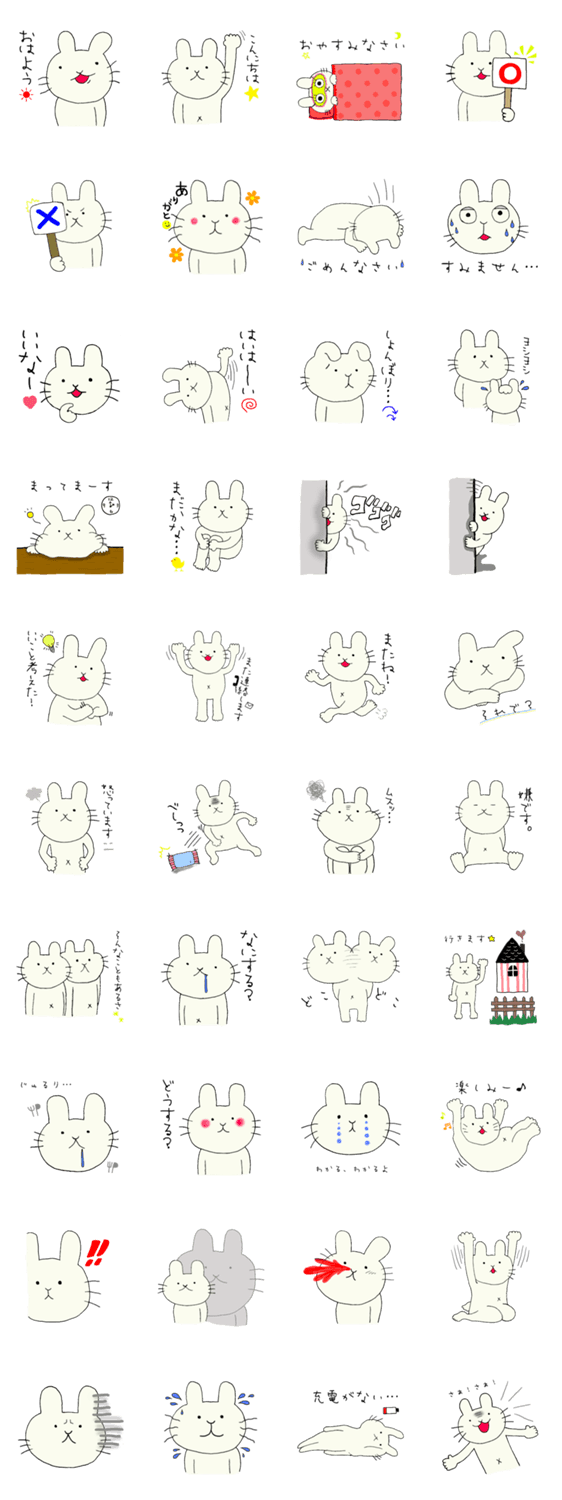 シンプルで使いやすい、白いうさぎのスタンプです。