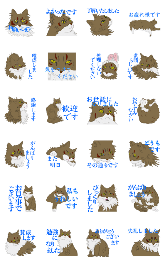 目上の人や親しい友達にも日常使いやすいものばかり。ツンデレ猫のミミちゃんはていねいな言葉を使います。