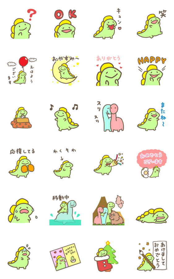 恐竜さんのポップアップスタンプです。 誕生日、新年の挨拶、応援、クリスマスなど1年中使えるスタンプです。