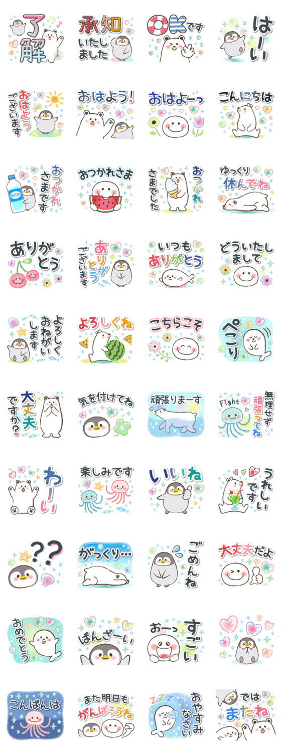 夏の毎日に涼しげな大人かわいい♡アニマル&スマイルの毎日使いやすい爽やかなスタンプです