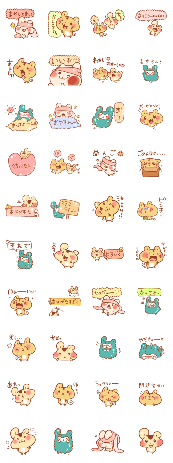 ほわほわあにまるのハムスター、うさぎ、アルパカ、猫がいつもより小さくなりました!第三弾は日常会話で使えるメッセージスタンプです。