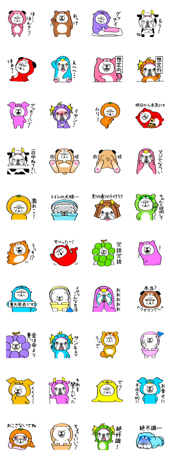 着ぐるみを着た「ブサかわちゃん」のスタンプですわ♪