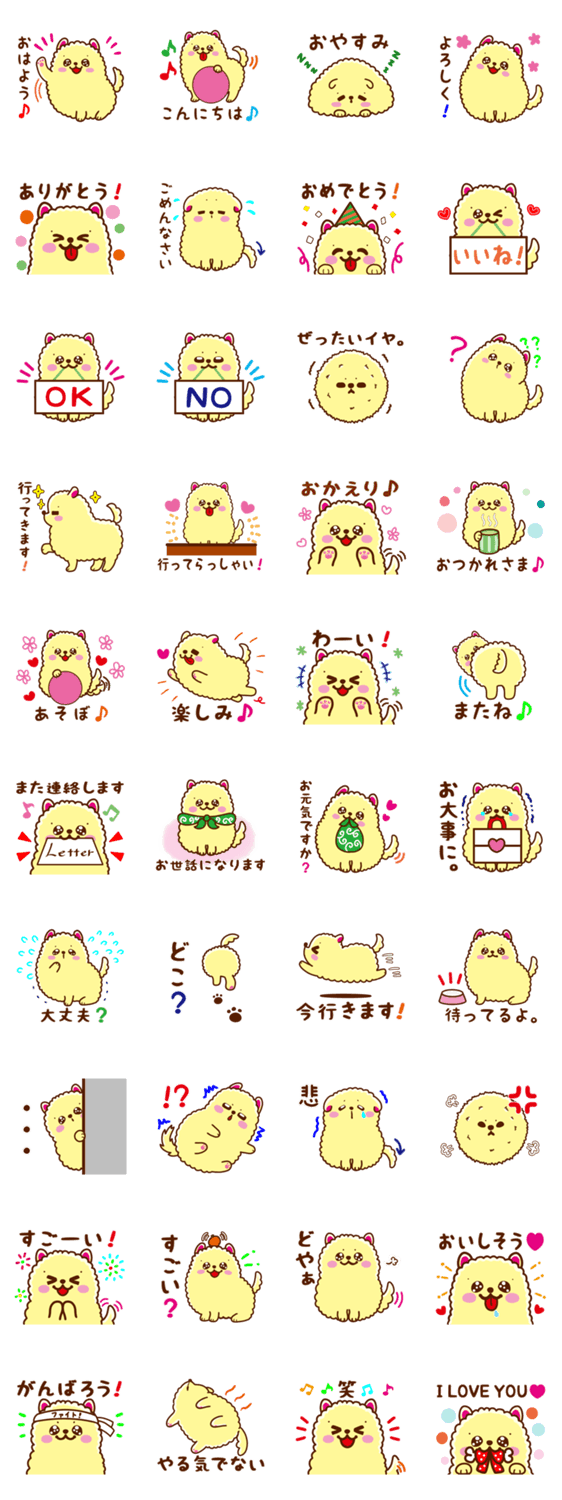 毎日使えるあざとくて可愛いぽめらにあんのスタンプです。友達・家族との挨拶やいろいろな気持ちを伝えたいときにお使いください。犬好きな方へおススメです。