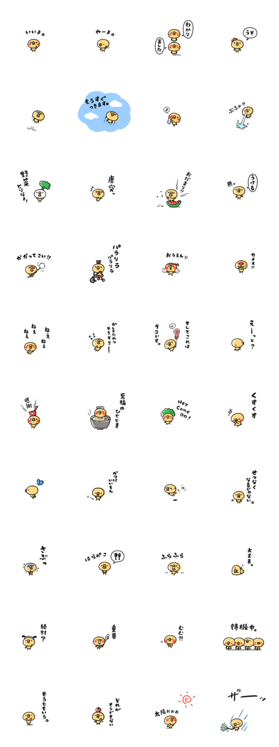 ミニサイズのかわいいひよこが一生懸命に喜怒哀楽を表現します。敬語からお友達向けに毒舌や冗談なども。こちらは第二弾です。※小さいスタンプです。