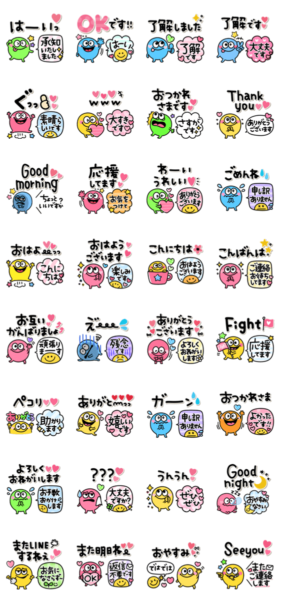 超カラフル♡毎日使える無難な日常会話と吹き出しのセットです。 かわいい/挨拶/家族/カップル/大人可愛い/ガーリー/BIGデカ文字 敬語