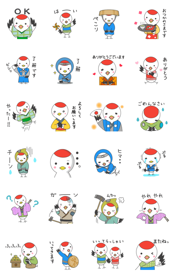 鶴のつるちゃが江戸時代に登場! 使いやすい日常スタンプです⭐︎