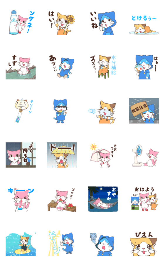 宝石猫の三匹が夏に使えるスタンプを届けにきました。 暑い夏を乗り切ろう!