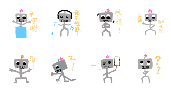 Fancy robot has a flower on his head.