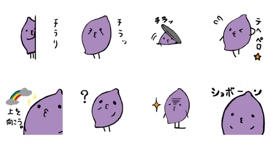 スタンプ説明文 マンホールから出てくる、おいも型地底人のスタンプ。 その9 基本的につまみぐいか、ゴロゴロしている。