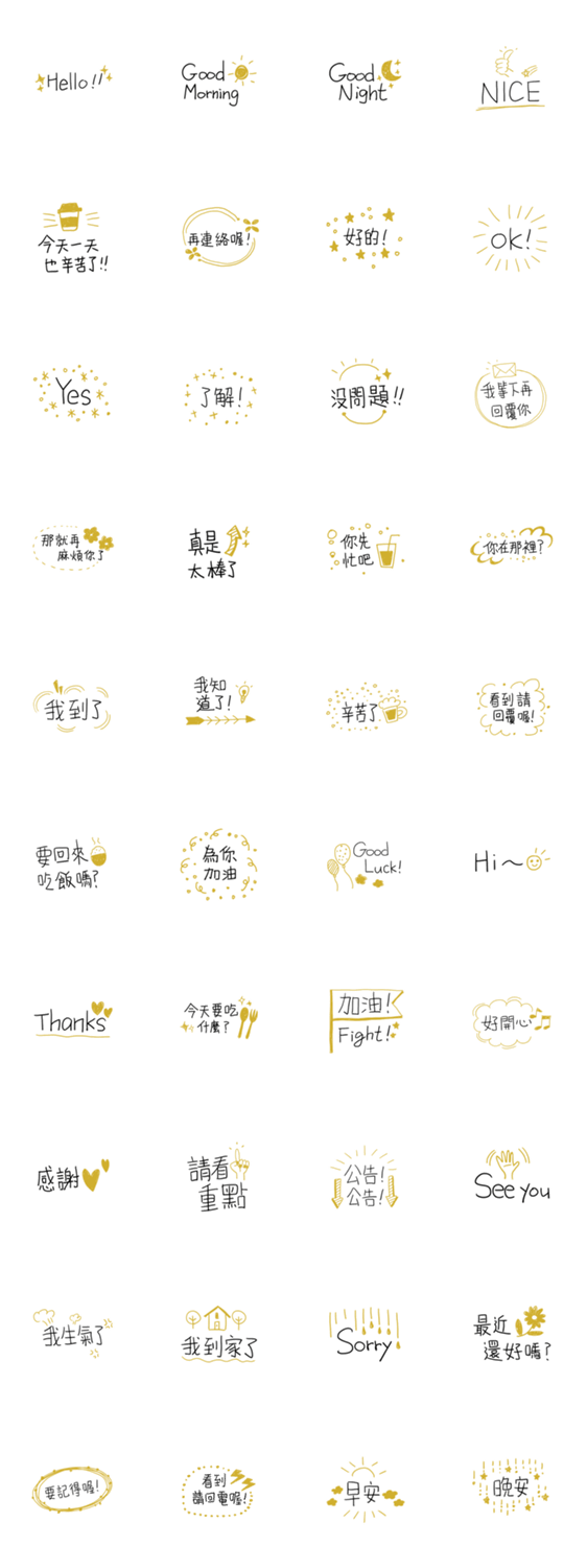 The handwritten text of daily conversations is accompanied by simple monochrome decorative stickers.